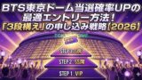 この記事では、BTSの東京ドーム公演チケットを手に入れるために、曖昧な倍率予想ではなく、データに基づいた具体的な戦略を解説してきました。