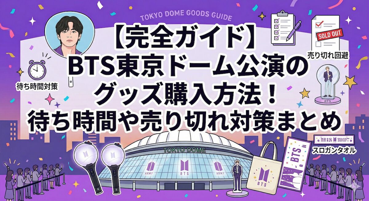 BTSの東京ドーム公演、参戦が決まったら次に気になるのは「グッズをどうやって買うか」ですよね。 毎回長蛇の列ができ、人気アイテムはあっという間に売り切れてしまうBTSのグッズ販売。確実に目当てのアイテムを手に入れるためには、事前の情報収集と対策が必須です。