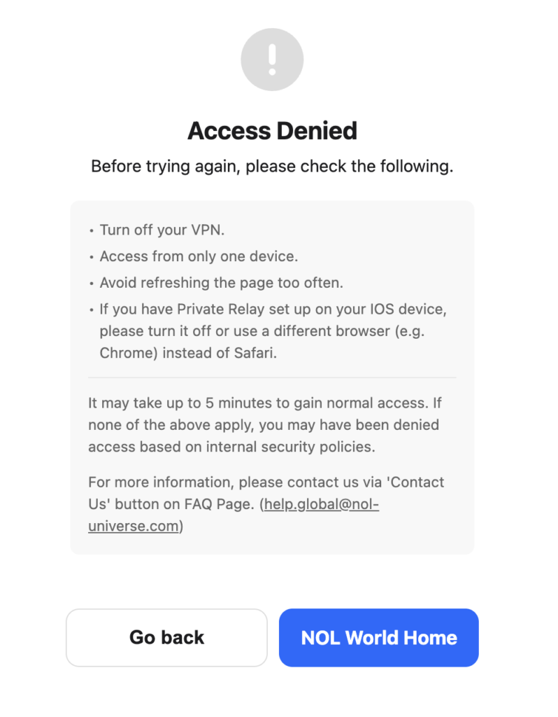 NOL World チケッティング Access Denied 対策と必須チェックリスト